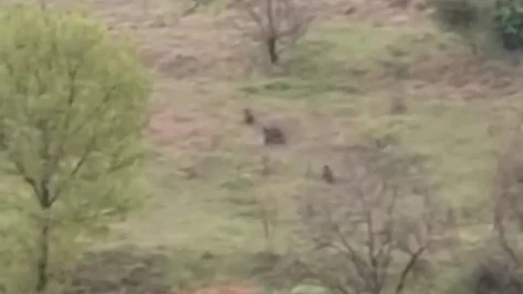 Başköy köyü istikametinde ilerleyen araçtakiler, yola çıkan iki ayıyla karşılaştı. Ayılar, aracın önünde bir süre koşarak kaçmaya çalıştı. Daha sonra yol kenarındaki yamaca tırmanan ayılar, karanlıkta gözden kayboldu.