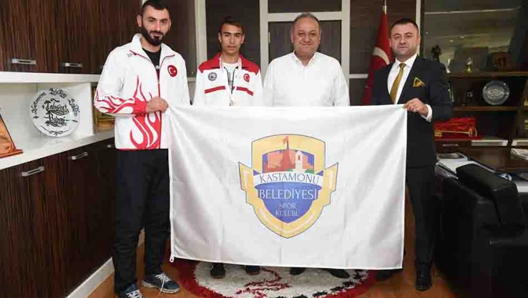 10 ülkenin katılımıyla Edirne'de düzenlenen Wushu Balkan Şampiyonası'nda Hırvat rakibini nakavt ederek Gençler 56 kiloda Balkan Şampiyonu olan Kastamonu Belediye Gençlik Spor Kulübü sporcusu Batuhan Çayan, Belediye Başkanı Tahsin Babaş tarafından ödüllendirildi. Kastamonu Belediyesi Spor İşleri Müdürü Metehan Babaş ve Antrenör Emrah Şahanoğlu'yla birlikte Başkan Tahsin Babaş'ı makamında ziyaret eden Batuhan, ay yıldızlı bayrağı zirvede...