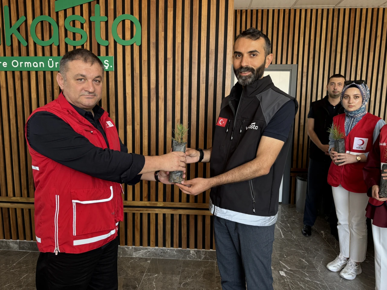 Kastamonu'da bir fabrikanın sahipleri tarafından Türk Kızılay'a bağışlanan fidanlar, okul bahçelerinde toprakla buluşturulacak.