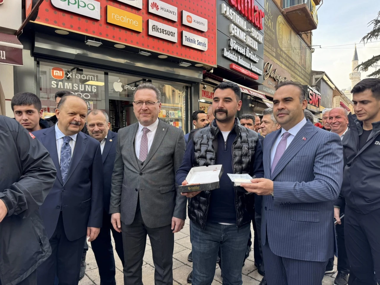 Kastamonu'ya gelen Sanayi ve Teknoloji Bakanı Mehmet Fatih Kacır, Nasrullah Meydanı'nda vatandaşlar ve esnaflar ile bir araya geldi.