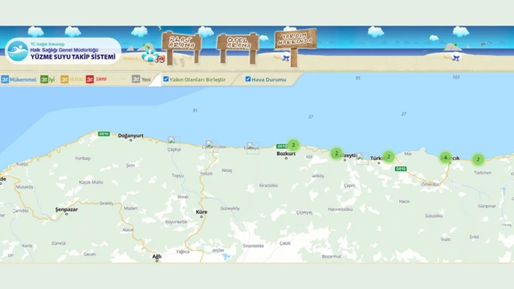 Bu kapsamda Sağlık Bakanlığı'nın projesi yoğun ilgi görüyor. Sağlık Bakanlığı'nın uygulamaya koyduğu Yüzme Suyu Takip Sistemi'ne göre Kastamonu'nun sahil ilçelerindeki plajlar 'yeşil' yani 'iyi' olarak değerlendirildi.