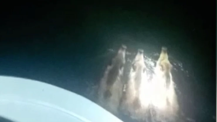 Yılmaz, "Eyrik köyü açıklarında balık için açıldığımızda denizde 3 domuz gördük. Bir süre ışık tutarak önümüzde onları götürdükten sonra teknenin önünden ayrıldılar. Sonra takip ettim sahile çıktılar. Biz de o anları cep telefonuyla kayda aldık" dedi.