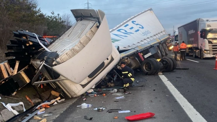 Bariyerlere Çarpan Tır Hurdaya Döndü