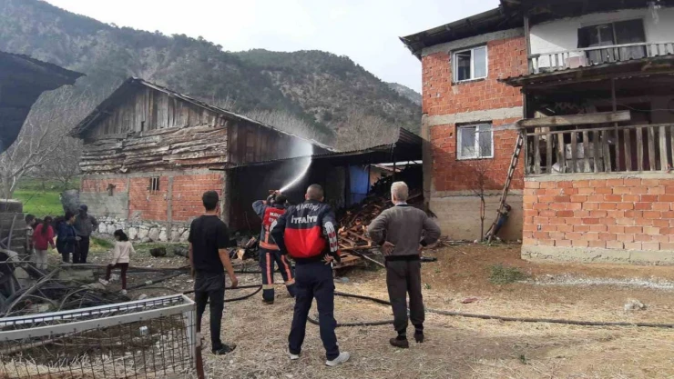 Bolu'nun Mudurnu ilçesinde ev ve ahırın bitişiğindeki odunlukta çıkan yangın büyümeden söndürüldü.