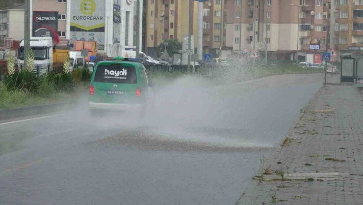 Bartın’da sabahın ilk ışıklarından itibaren gök gürültüsü ve sağanak yağış etkili oldu. zaman zaman şiddetini arttıran yağışta tıkanan mazgallar nedeniyle yollar gölete döndü. Yağış nedeniyle yayalar, yollarda oluşan su birikintileri nedeniyle ise araç sürücüleri zor anlar yaşadı. Yağışa rağmen araç ve uyarı işaretleri ile su birikintilerinin oluştuğu bölgelerde tedbir alan karayolları ekipleri, tıkanan mazgalları temizledi. Yaklaşık 3 saat süren yağış etkisini azaltarak yerini güneşli bir havaya bıraktı.