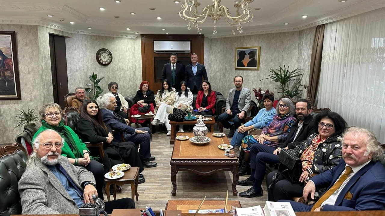 Türk Dünyası Güzel Sanatlar Birliği 1'inci Uluslararası Bartın Sanat Sempozyumu heyeti, Bartın Belediye Başkanı Muhammet Rıza Yalçınkaya'yı ziyaret etti.