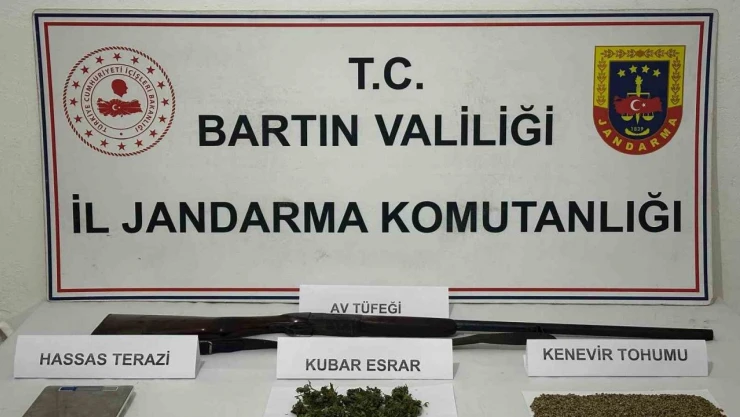 Edinilen bilgiye göre, Bartın’ın Ulus ilçesi Abdipaşa Beldesi’nde bir şahsın evine operasyon düzenledi. Operasyonda 40 gram kubar esrar olduğu değerlendirilen uyuşturucu madde, 1 adet hassas terazi, 97 gram kenevir tohumu, 1 adet ruhsatsız av tüfeği ele geçirildi.