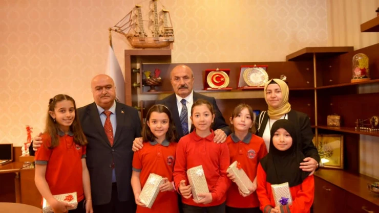 Taşköprü Fatih İlkokulu öğrencileri, 23 Nisan Ulusal Egemenlik ve Çocuk Bayramı vesilesiyle Taşköprü Belediye Başkanı Hüseyin Arslan'ı makamında ziyaret ettiler.