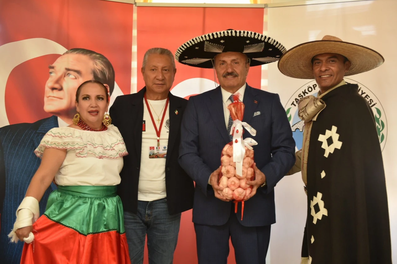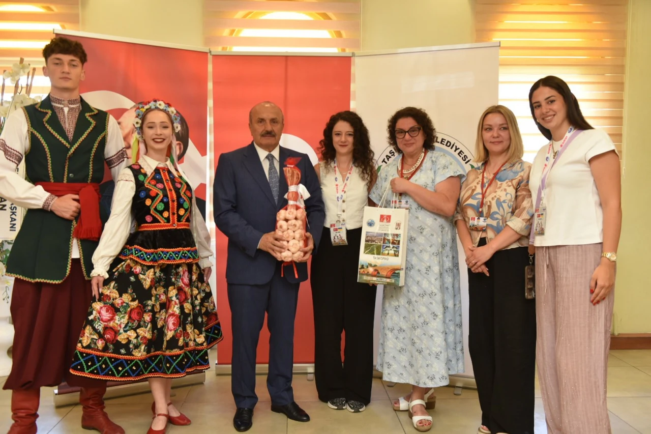 Taşköprü Belediye Başkanı Hüseyin Arslan, Kuzey Kıbrıs Türk Cumhuriyeti Beyarmudu Belediye Başkanı Bülent Bebek ve CİOFF Türkiye Başkanı Muammer Arslan ile birlikte Uluslararası Kültür ve Sarımsak Festivaline katılan yabancı halk oyunları ekipleriyle kahvaltıda bir araya geldi.