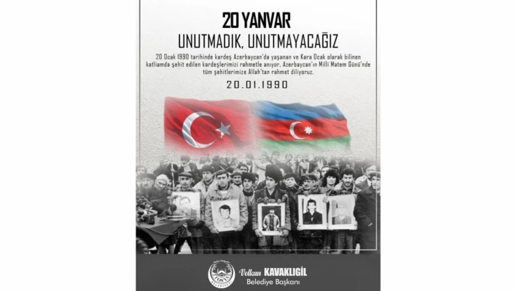 Tosya Belediye Başkanı Volkan Kavaklıgil, Azerbaycan'da yaşanan Kara Yanvar katliamında şehit edilenler dolayısıyla anma mesajı yayınladı.