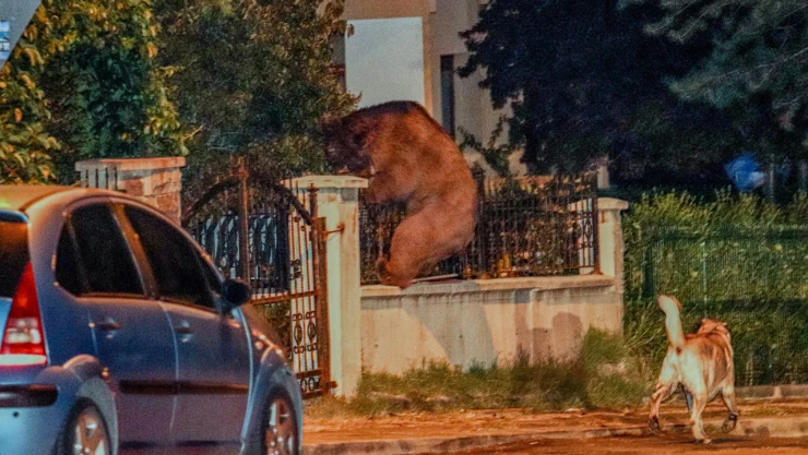Olay, Ankara'nın Kızılcahamam ilçesinde akşam saatlerinde meydana geldi. Ormanlık alanda yiyecek bulamadığı için yerleşim yerine kadar inen ayı, Soğuksu Milli Parkı mevkiinde köpeklerin kovalaması sonrası çevrede bulunan bir apartmanın çitlerinden atlayarak bahçeye girdi ve gözden kayboldu. Sokakta bulunanların büyük heyecan yaşadığı o anlar ise cep telefonu kamerası tarafından saniye saniye kaydedildi.