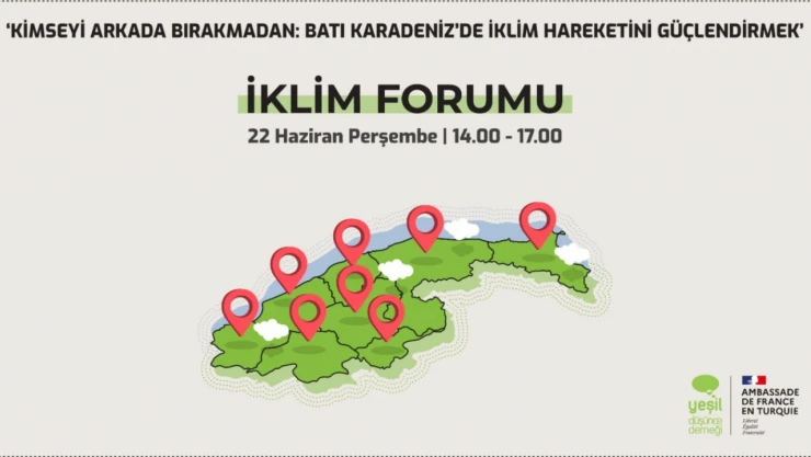 Yeşil Düşünce Derneği'nin Fransa Konsolosluğu'nun desteği ile yürüttüğü 'Kimseyi Arkada Bırakmadan: Batı Karadeniz'de İklim Hareketinin Güçlendirilmesi' projesi kapsamında İklim Forumu gerçekleştirilecek.