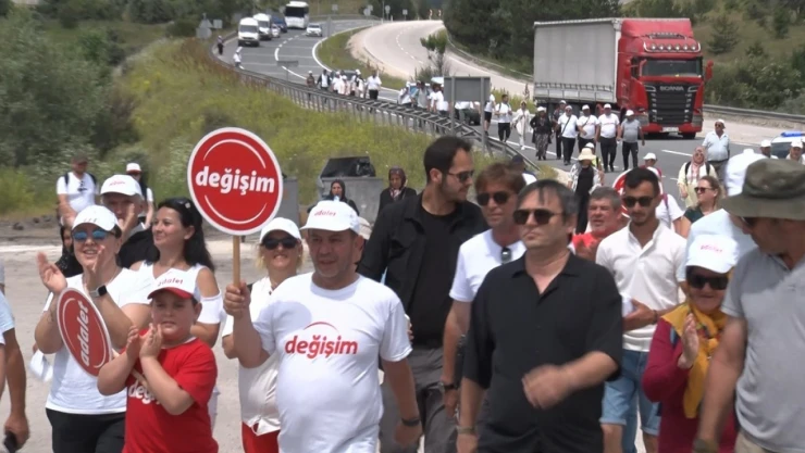 Bolu Belediye Başkanı Tanju Özcan, CHP'ye yönelik başlattığı 'Değişim ve Adalet' yürüyüşünün 5'inci gününde yürüyüşüne devam etti.