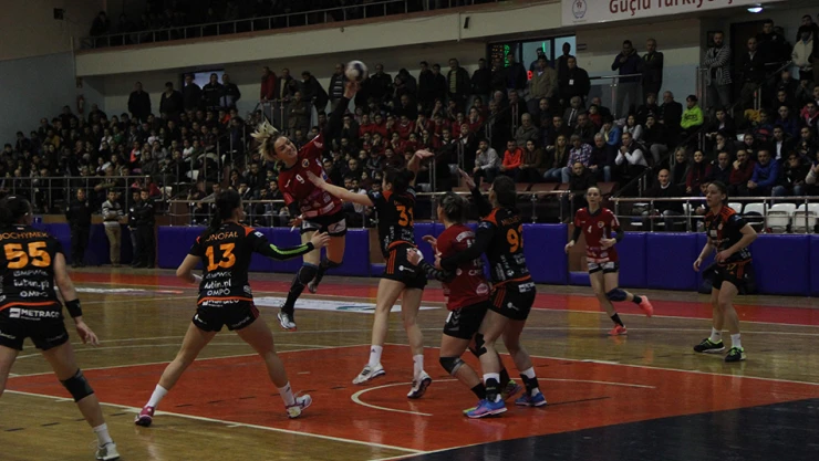 BELEDİYESPOR’DAN TARİHİ BAŞARI Bayanlar Hentbol Challenge Kupası’nda mücadele eden temsilcimiz Belediyespor kupadaki rövanş mücadelesinde Polonyo temsilcisi Metraco Zaglebie Lubin'i konuk etti. Cuma günü oynanan ilk maçta 43-39’luk skorla sahadan galip ayrılan temsilcimiz Belediyespor rövanş mücadelesini de 30-24’lük skorla kazanarak Challenge Cup’ta adını çeyrek finale yazdırdı. Atatürk Spor Salonu’nda oynanan karşılaşmada taraftarlarının da desteğini arkasına alan temsilcimiz Belediyespor üstün bir oyun sergileyerek rahat bir galibiyet aldı. Mücadelenin ilk devresi konuk ekip Lubin’in bulduğu gol ile başladı. Temsilcimiz Belediyespor mücadelenin 3’üncü dakikasında 3-2’lik üstünlük sağladı. İlk mücadelede aldığı galibiyetin ardından ikinci maçta daha kapalı ve az hata yapan bir savunma sergileyen temsilcimiz Belediyespor ilk maça oranla daha az gol yedi ve daha az gol kaydetti. İlk yarının son saniyelerine 13-14’lük skorla geride giren temsilcimiz son saniyelerde bulduğu golle ilk devreyi 14-14 berabere tamamladı. İkinci yarıya hızlı başlayan temsilcimiz Belediyespor, devrenin üçte birlik kısmında farkı üç sayıya kadar çıkardı. Polonya temsilcisi ardından gerçekleştirdiği ataklarla farkı bir sayıya kadar düşürmeyi başardı. (18-19) Son üçte birlik kısma girilirken taraftarının da desteğini arkasına alan Belediyespor farkı yeniden açarak son 10 dakika kala 23-27’lik üstünlük sağladı. Bu dakikadan sonra rakibi üzerindeki ağırlığını iyice hissettiren Belediyespor mücadeleden 24-30’luk skorla galip ayrılarak Challenge Cup’ta adını son 8 takım arasına yazdırdı.