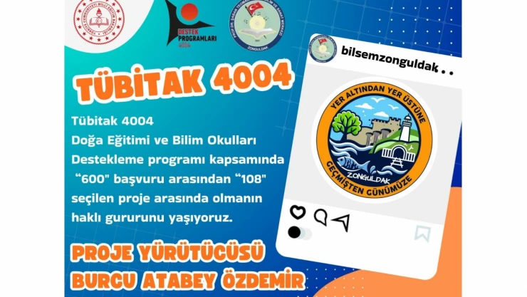 Kurum öğretmenlerinden Burcu Atabey Özdemir’in yürütücülüğünü yaptığı "Yer Altından Yer Üstüne Geçmişten Günümüze Zonguldak-2" adlı proje, TÜBİTAK 4004 Doğa ve Bilim Okulları kapsamında desteklenen 108 proje arasına girmeye hak kazandı. Başvurusu yapılan 600 proje arasından seçilen çalışma, ilk etabını geçtiğimiz Eylül ayında Zonguldak genelinde öğrenim gören 30 ortaokul öğrencisiyle tamamladı. Projenin ikinci aşamasının, Karabük, Bartın ve Bolu Bilim ve Sanat Merkezlerinde eğitim gören öğrencilerle önümüzdeki Eylül ayında uygulanacağı öğrenildi.