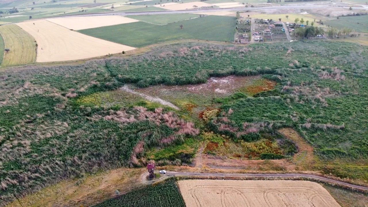 Çorum’da mevsim normallerinin altında seyreden yağışlar ve artan sıcaklık, sebebiyle barajlardaki su seviyesi düşmeye devam ediyor. Bir zamanlar Türkiye’nin en önemli kuş cennetleri arasında gösterilen Çorum’daki Gölünyazı ise tamamen kurudu. Geçen yıldan itibaren içerisindeki gölet kurumaya başlayan Gölünyazı’da geriye sadece sazlıklar kaldı. Dronla çekilen görüntüler kuş cennetinde yaşanan kuraklığı gözler önüne serdi.