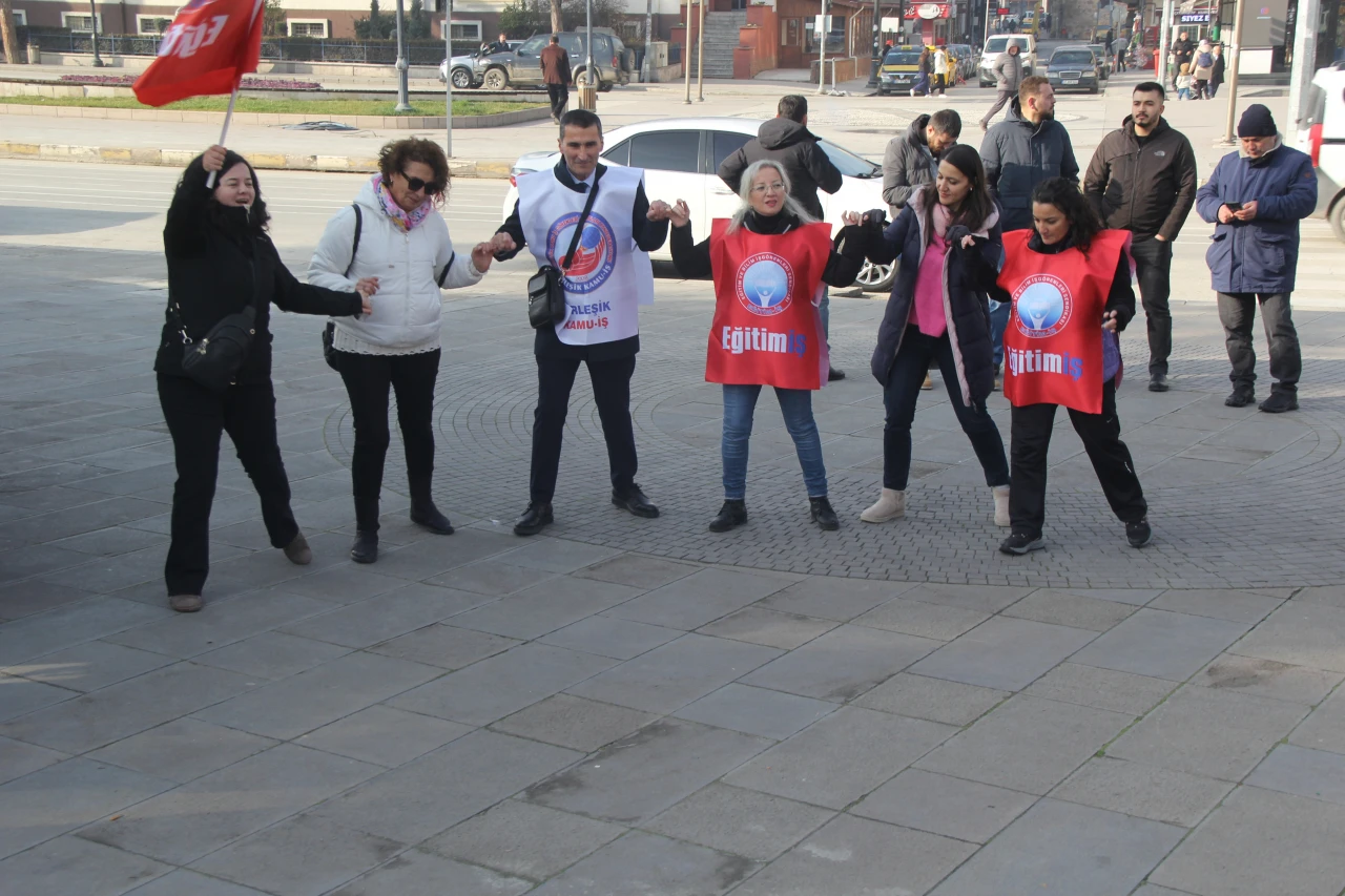 Basın açıklamasını gerçekleştiren Birleşik Kamu İş Konfederasyonu İl Temsilcisi Ahmet Tevfik Bal; “Birleşik Kamu-İş Konfederasyonu’na bağlı sendikalar olarak; AKP iktidarının emekçiyi yoksullaştıran, sermayeyi koruyan ekonomi politikalarına karşı insanca yaşam, adil ücret ve hakça paylaşım talebiyle 19 Aralık’ta üretimden gelen gücümüzü kullanıyor, iş bırakıyoruz. Bugün Türkiye’nin en büyük üçüncü kamu emekçileri konfederasyonu Birleşik Kamu-İş olarak işyerlerimizde değil meydanlardayız. Neden işyerlerimizde değil de meydanlardayız? Adına Toplu Sözleşme dedikleri tiyatroda emeğimizin hakkını gasp ettikleri, şimdi biz emekçilerin durumunu gözetmeden bütçe yaptıkları için meydanlardayız. Nasıl bir yoksulluk sarmalı içine atıldığımızı, göz göre göre nasıl nefes alamaz hale getirildiğimizi doğruca anlatabilmek için meydanlardayız. Halk olarak içine düştüğümüz ağır ekonomik krizin temelleri mevcut iktidar tarafından atıldı. Özelleştirme eliyle Cumhuriyet yadigarı olan fabrikalar, sadece arsalarının bedeli kadar düşük fiyatlara yandaşlara peşkeş çekildi. Ülkemiz üretmeden tüketen bir ülke haline getirildi. ‘Dolarla mı maaş alıyorsunuz, size ne dolardan’ denirken ülkede toplu iğne almak için bile dolar kuru takip edilir hale geldi. Üstüne bir de ‘faiz sebep, enflasyon sonuç’ gibi, kabul gören tüm ekonomi doktrinleriyle çelişen bir zihniyette yıllardır sürdürülen ısrar, ülkede yoksulun daha yoksul zenginin daha zengin olduğu, toplumun orta direği denen orta sınıfın yok olduğu bu karanlık ekonomik iklimi getirdi” dedi.