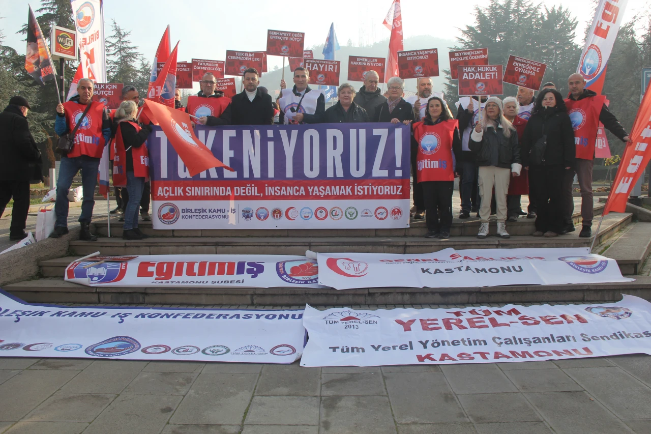 Kamu kaynaklarının sermaye gruplarına aktarıldığını belirten Ahmet Tevfik Bal; “Bütçenin yükü, yoksulluktan beli bükülen emekçilerin ve açlık sınırının bile altında maaşla yaşaya çalışan emeklilerin sırtına dolaylı vergilerle bindirilirken, kamu kaynakları sermaye gruplarına aktarılıyor. Sosyal devlet ilkesi görmezden gelinerek hazırlanan bütçede, halkın refahını gözeten en ufak bir düzenleme bile yok. Gelirden en büyük payı alanların sırtı kamu teşvikleri ve vergi sıfırlamalarıyla sıvazlanırken, bu bütçeye göre halk yine en çok vergiyi ödeyip yine en az hizmeti alacak. Oysa halkın vergileri şirketlerin kâr hanesine değil, yurttaşların ihtiyaçlarına ayrılmalıdır. Bütçe, halkın ortak kaynağıdır. Bu kaynaktan en büyük pay emekçiler, emekliler, gençler ve engelliler başta olmak üzere halkımıza ayrılmalıdır. Bütçe, ekonomiye yön veren bir rotadır; rotası adalete ve bilimsel verilere göre belirlenmeyen bu bütçenin daha da derin ekonomik krizlere kaynaklık edeceği ne yazık ki gün gibi ortadadır. Artık yeter, yaşamakta zorlanıyoruz! Milli gelirden hakkaniyetle almamız gereken payı istiyoruz! Sorumlusu olmadığımız ekonomik krizin faturasını ödemeyi reddediyoruz! İnsanca çalışma şartları ve insanlık onuruna yaraşır ücretler istiyoruz! Yoksulluk sınırının üstünde maaş istiyoruz! Sadece dar bir grup için gündeme getirilip sonra geri çekilen seyyanen zammın emekçi ve emeklilerin tamamına verilmesini istiyoruz! Yan ödemelerin tamamının emekli aylıklarına yansıtılmasını istiyoruz! Gelir vergisinin yüzde 15’e sabitlenmesini istiyoruz! Enflasyon farkının aylık olarak ödenmesini istiyoruz! Yılda 4 ikramiye istiyoruz! Kira yardımı istiyoruz! Kamu emekçisinin umudu olan Birleşik Kamu-İş olarak altını çiziyoruz: Bu iş bırakma eylemimiz bir uyarıdır. Kamu emekçisi, gasp edilen hakları teslim edilmedikçe üretimden gelen gücünü kullanmayı da demokratik hakları çerçevesinde mücadele etmeyi de sürdürecektir. Haklıyız! Direneceğiz! Kazanacağız” şeklinde konuştu.