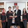Masa Tenisi takımı adına, Nihal Akpınar, Özlem Kimbil, Nimet Özbay Karağlu ve Büşra Demir’den oluşan masa tenisi takımı temsilcileri İl Sağlık Müdürü Dr. Fevzi Yavuzyılmaz’ı makamında ziyaret ederek turnuvada kazandıkları kupayı paylaştılar.