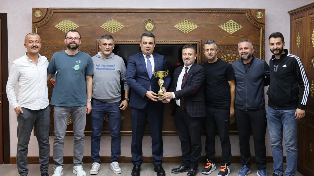Bölge şampiyonu olan öğretmenler, bu anlamlı başarı sonrası İl Millî Eğitim Müdürü Hasan Gümüş’ü makamında ziyaret ederek şampiyonluk kupasını Gümüş'e takdim ettiler.