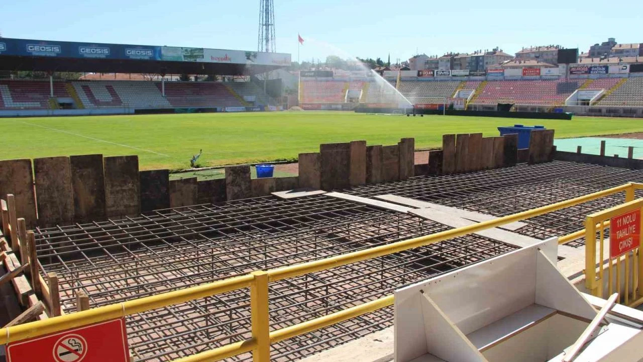 Depreme dayanıksız olduğu gerekçesiyle kapatılan Bolu Atatürk Stadyumu'nda, Boluspor'un iç saha maçlarını yeniden Bolu'da oynayabilmesi için geçici düzenlemeler sürüyor.