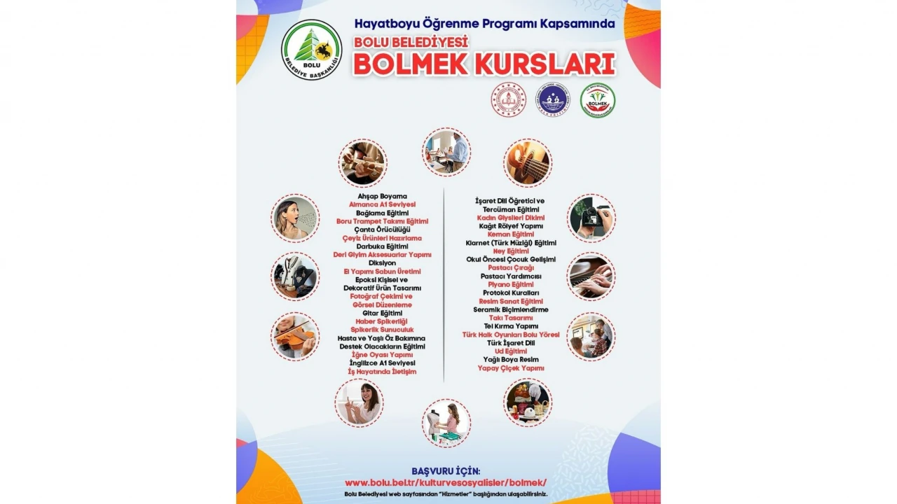 Bolu Belediyesi’nden yapılan açıklamada, kurslara katılım için başvuruların belediyenin resmi web sitesi üzerinden alınacağı belirtilerek, tüm vatandaşlar davet edildi.