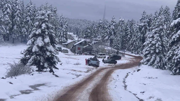Bolu'nun Gerede ilçesinde bulunan Arkut Dağı'nda dün gece etkili olan kar yağışı sebebiyle yeşil alanlarda kar kalınlığı 10 santimetreye ulaştı.