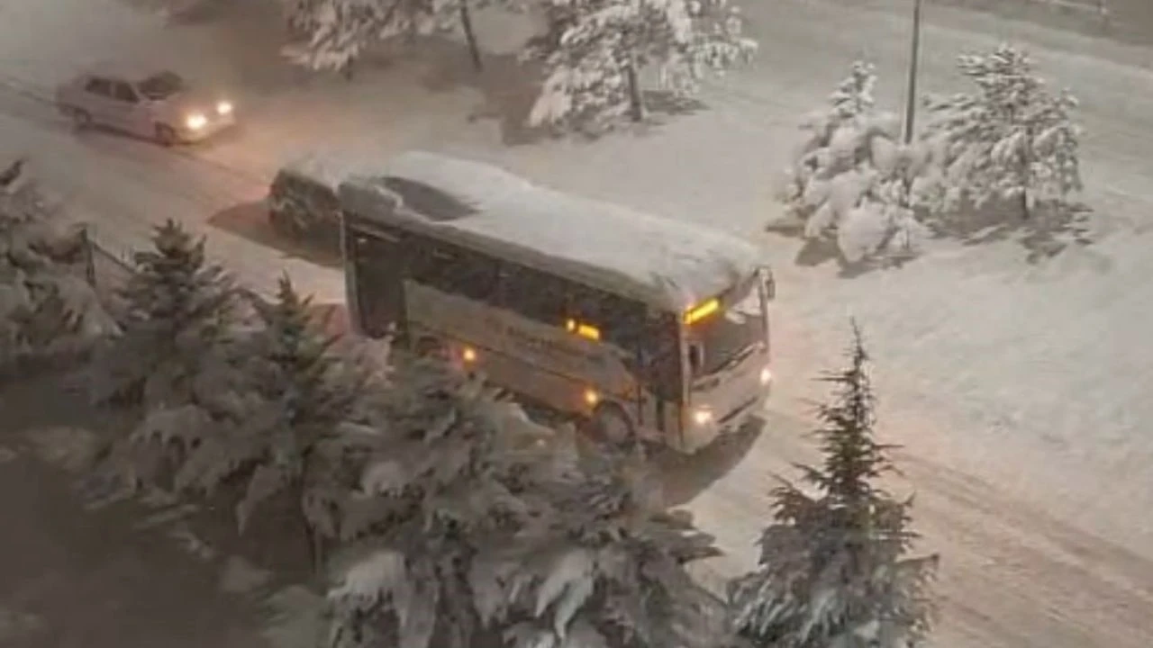 Bolu’da etkisini artıran yoğun kar yağışı, kent merkezinde hayatı felç etti. Kar kalınlığının 30 santimetreyi aştığı şehirde, ana arterlerdeki dik rampalarda onlarca araç yolda kaldı. Üniversite seferini yapan bir halk otobüsü yokuşu çıkamayarak geri döndü.