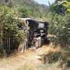 Bolu'nun Mudurnu ilçesinde kontrolden çıkan tır, fındık bahçesine devrildi.