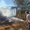 Bolu'nun Yeniçağa ilçesinde otluk alanda çıkan yangında 2 katlı ahşap ev yandı.