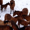 Bolu'da karlı havada yiyecek bulmakta zorlanan yılkı atları şehir merkezine indi. Vatandaşın ihbarı üzerine bölgeye gelen belediye ekipleri, okul bahçesine giren atları samanla besledi.