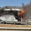 Bolu’da D-100 kara yolunda seyir halindeki yolcu midibüsü, motor kısmından çıkan yangında kısa sürede alevlere teslim oldu. İtfaiye ekiplerince söndürülen araç kullanılamaz hale geldi.