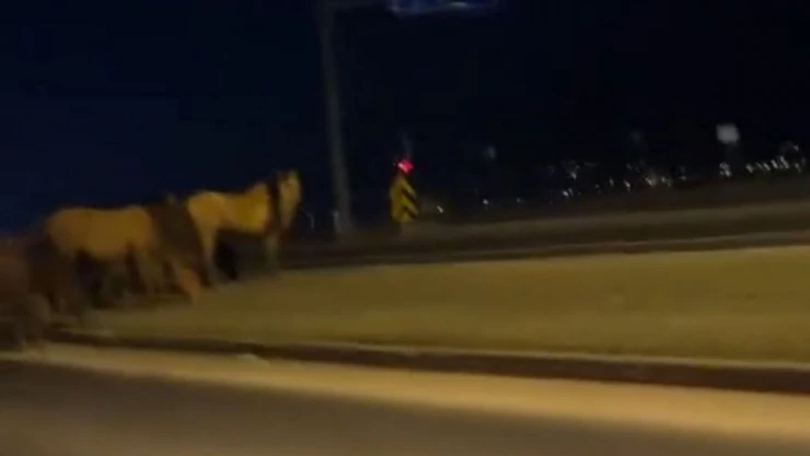 Refüjdeki çimleri yiyerek karınlarını doyuran atlar, zaman zaman yola yaklaşarak trafikte tehlike oluşturdu. Güzergahı kullanan sürücüler, atlara çarpmamak için hızlarını düşürerek kontrollü şekilde ilerledi. Bir süre orta refüjde otlayan atlar, daha sonra bölgeden uzaklaşarak gözden kayboldu.