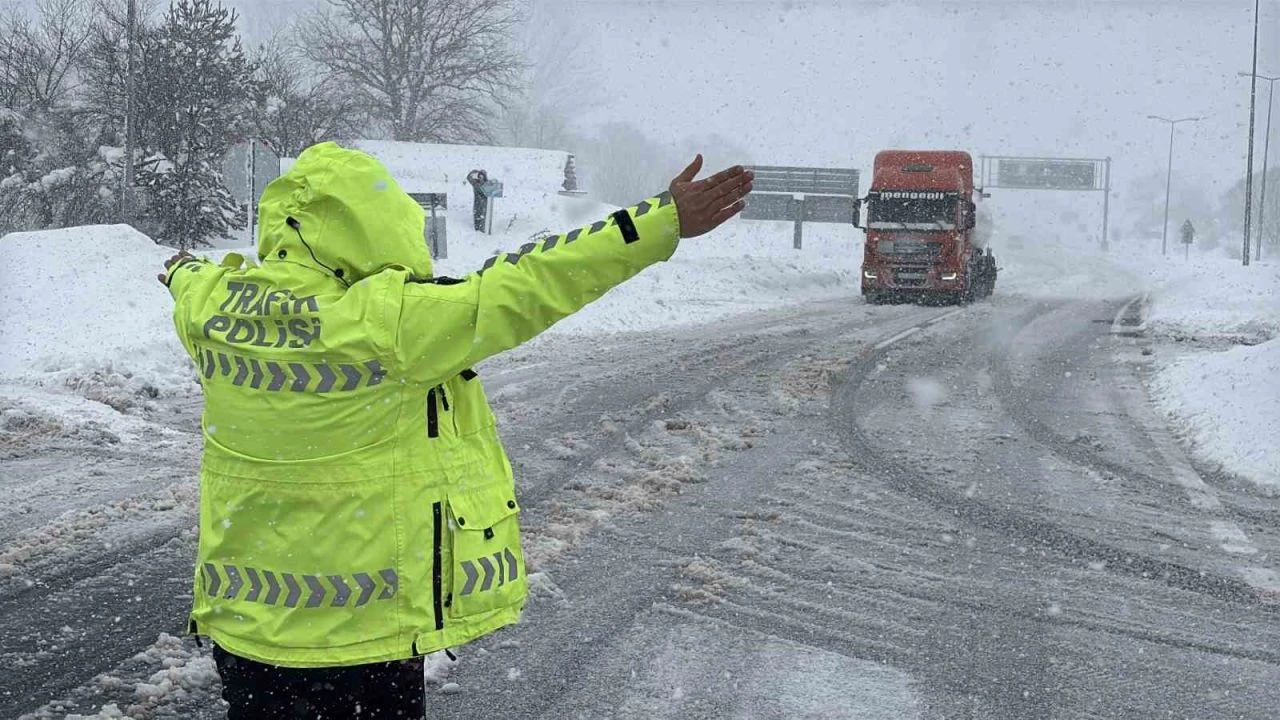 Bolu’da gün boyu aralıklarla devam eden ve öğle saatlerinde etkisini artıran kar yağışı, ulaşımda aksamalara neden oldu. Özellikle Türkiye’nin en önemli geçiş güzergahlarından biri olan D-100 kara yolunun Bolu Dağı kesiminde yoğun kar yağışı ve buzlanma riski sebebiyle tedbirler artırıldı. Kar yağışının şiddetini artırması üzerine harekete geçen İl Emniyet Müdürlüğü’ne bağlı trafik ekipleri, D-100 kara yolunun Ankara ve İstanbul istikametini tır ve kamyon geçişlerine kapattı. Elmalık Kavşağı mevkiinde kontrol noktası oluşturan ekipler, ağır tonajlı araçların D-100 kara yolunu kullanmasına izin vermiyor. Sürücüler, ekipler tarafından TEM Otoyolu’na yönlendirildi. Kar yağışının etkisini yitirmesiyle yol tekrar ağır tonajlı araçların trafiğine açıldı.