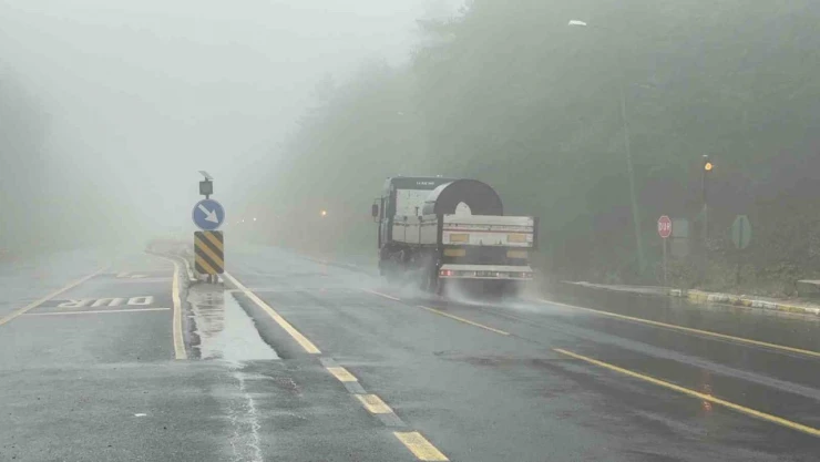 Türkiye'nin en önemli geçiş güzergahlarından biri olan D-100 kara yolunun Bolu Dağı geçişinde yoğun sis ve sağanak sebebiyle görüş mesafesi 20 metreye kadar düştü.