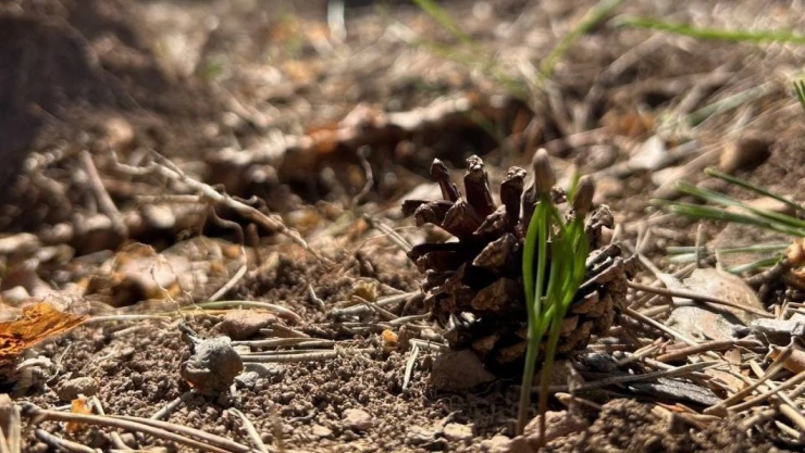 Bolu'nun Mudurnu ilçesinde Orman İşletme Müdürlüğü tarafından yürütülen Karaçam Doğal Gençleştirme çalışmaları kapsamında sahalarda çimlenmelerin başladığı gözlemlendi.