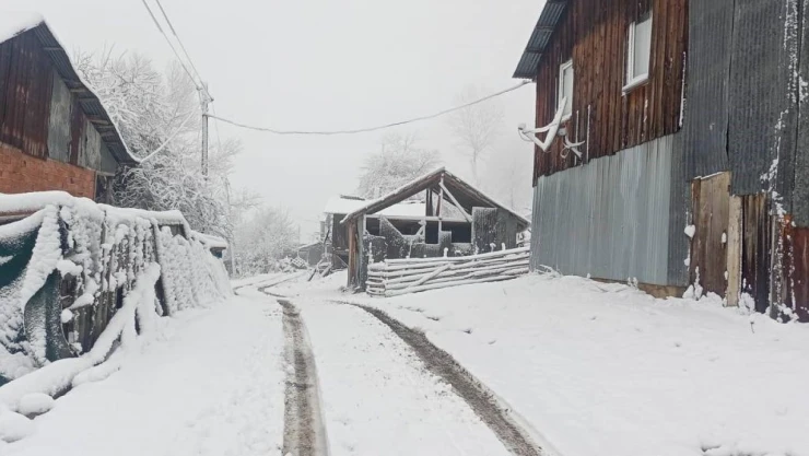 Bolu'nun yüksek kesimlerinde etkili olan yağmurun yerini kar yağışına bırakmasıyla Abant bölgesindeki köylerde kar kalınlığı 10 santimetreye ulaştı.