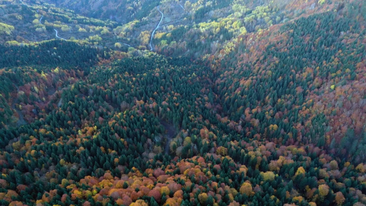 Küre Dağları'nın Kastamonu sınırında bulunan ormanları, sonbahar renklerine büründü.