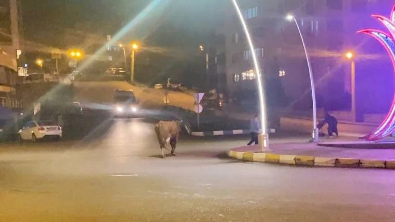 Cumhuriyet Mahallesi Şahintepe mevkisinde caddeye çıkan 3 büyükbaş hayvan bir süre araçların arasında dolaştı. Sürücüler, ilerleyebilmek için hayvanların caddeyi terk etmesini beklemek zorunda kaldı. O anlar, cep telefonu kamerasıyla kaydedildi.