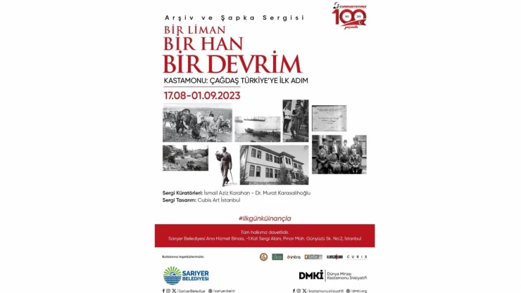 Dünya Mirası Kastamonu İnisiyatifi (DMKİ) ve Sarıyer Belediyesi tarafından Cumhuriyetimizin 100’üncü yılı münasebetiyle “Bir Liman, Bir Han, Bir Devrim; Kastamonu: Çağdaş Türkiye’de İlk Adım” sergisi 17 Ağustos Perşembe günü Sarıyer Belediyesi Ana Hizmet Binası’nda açılacak.