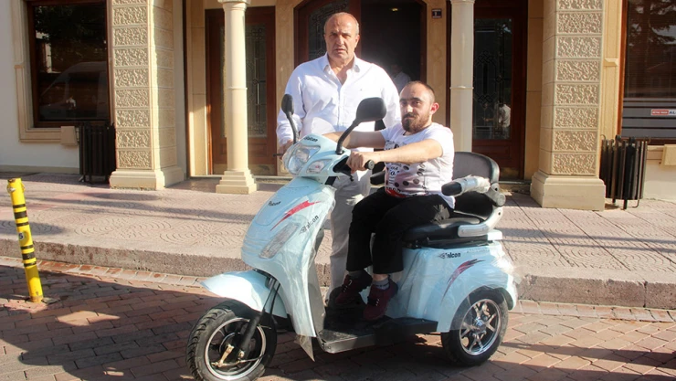 Taşköprü Belediye Başkanı Hüseyin Arslan, cam kemik hastası olan Serhat Çelik isimli (32) gence elektrikli mobilet hediye etti. Taşköprü’de yaşayan cam kemik hastası 1,15 metre boyundaki Ayten Çelik (63) ve 1,50 metre boyundaki Hüseyin Çelik (59)’in 1,30 metre boyundaki cam kemik hastası çocukları Serhat Çelik, geçtiğimiz günlerde Taşköprü Belediye Başkanı Hüseyin Arslan’ı makamında ziyaret etti. Arslan’da ilçe genelinde her zaman engelli vatandaşların yanında olduğunu belirterek kendisi için de elinden geleni yapmaya hazır olduğunu kaydetti. Çocukken geçirdiği 9 ameliyatın ardından belden aşağısına konulan platinlerle ve koltuk değnekleriyle hayata tutmaya çalışan Serhat Çelik ise Belediye Başkanı Arslan’a elektrikli mobiletinin olması halinde arkadaşları gibi rahat gezebileceğini ifade etti. Bunun üzerine hemen bir firmayı arayan Başkan Arslan, Çelik’e uygun 3 tekerlekli elektrikli mobilet siparişi verdi. Siparişinin kısa sürede teslim edilmesi üzerine Başkan Arslan, Serhat Çelik’e, Belediye binası önünde elektrikli mobileti takdim etti. Yetkililer ise Çelik’e mobiletin kullanımıyla ilgili bilgi verdi. “BİR GENCİMİZİ SEVİNDİRMEK KADAR GÜZEL BİR ŞEY YOK” Konuyla ilgili konuşan Belediye Başkanı Hüseyin Arslan; “Bir gencimizi sevindirmek kadar güzel bir şey yok. Elimizden geldiği kadar engelli vatandaşlarımızla birlikte tüm hemşerilerimizin yanında olmaya devam edeceğiz. Serhat arkadaşımıza da mobiletini iyi günlerde kullanmasını diliyorum” dedi. Serhat Çelik ise çocukluğundan bu yana arkadaşlarıyla istediği gibi gezip eğlenemediğini fakat Belediye Başkanı Hüseyin Arslan’ın kendisini kırmayarak böyle bir hediye etmesinden dolayı artık rahatlıkla istediği her yere gidebileceğini ve eğlenebileceğini kaydetti. Çelik, ilçede oldukça güzel ve başarılı hizmetler de bulunan Arslan’a kendisini de unutmadığı için ayrıca teşekkür etti.
