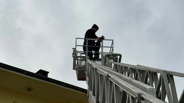 Çatıda Mahsur Kalan Kedi Kurtarıldı