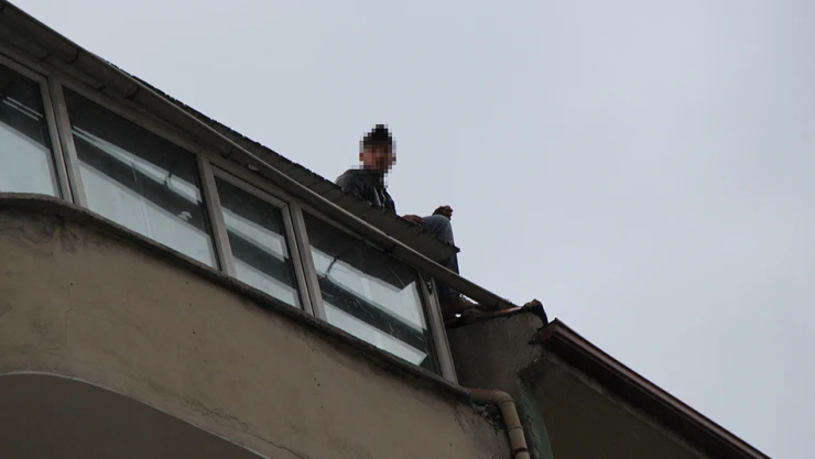 Çatıya çıkan genç, Başkan Babaş'ı çağırdı