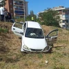 Zonguldak'ın Çaycuma ilçesinde otomobille çarpışan araç yoldan çıkarak evin boşluğuna düştü.