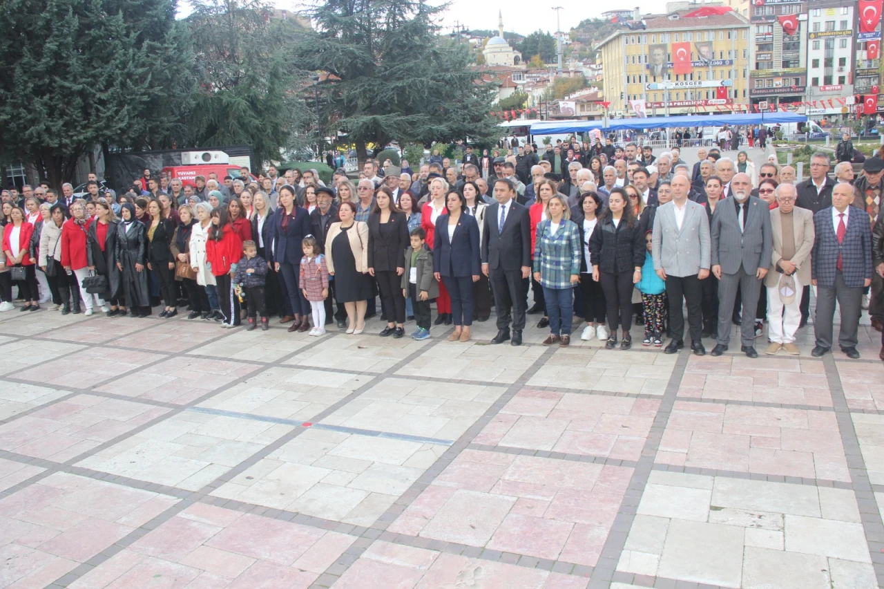 Çelenk sunma töreninde konuşan, CHP İl Başkanı Dilek İlke Karabacak; “Kıymetli yol arkadaşlarım, Gazi Mustafa Kemal Atatürk’ün, ‘En büyük eserim’ diyerek bizlere emanet bıraktığı Cumhuriyetimizin 102. yılını büyük bir gurur ve mutlulukla kutluyoruz. Cumhuriyetimizin ikinci yüzyılında Gazi Mustafa Kemal Atatürk’ün hayal ettiği gibi özgürlük, eşitlik ve adalete dayalı; güçlü ve refah bir ülkeyi hep birlikte inşa edeceğiz. Atatürk’ün bize emanet ettiği Cumhuriyeti ilelebet yaşatacağız. Yuvamız Kastamonu’nun yiğit, cesur, mert insanları. Cumhuriyet, Türkiye’yi zor günlerden kurtaran, sıçrayarak kalkındıran Atamızın mirası, milletin iradesidir. Cumhuriyet, akıldır, bilimdir, çağdaş uygarlıktır. Cumhuriyet, bacası tüten Şeker Fabrikasıdır. Üç kuruşa özelleştirip, kapısına kilit vurdukları SEKA’dır. Ekili tarla, bozkıra dikili ağaçtır. Cumhuriyet cehaleti yenmektir. Okula giden kız çocuğudur. Kadının medeni ve siyasal haklarına kavuşmasıdır cumhuriyet. Çalışan, üreten, hayata katılan, eşit ve özgür kadındır cumhuriyet. Cumhuriyet, her şeyden önce gücünü çağdaş hukuktan alan milli egemenliktir. Ama üzülerek ifade ediyorum ki; Büyük Önderimiz Gazi Mustafa Kemal Atatürk’ün ‘Egemenlik kayıtsız şartsız milletindir’ diyerek kurduğu Cumhuriyetimiz, 102 yılda büyük badireler atlatmış, demokrasimiz darbe dönemlerinden geçmiştir. Bugün de demokrasimiz, sandıkla gelen ancak sandıkla gitmek istemeyen, yargıyı araçsallaştırmış Saray Rejiminin saldırıları altındadır. Ama asla unutmasınlar; Millî egemenlik öyle bir nurdur ki, onun karşısında zincirler erir, taç ve tahtlar yanar, yok olur… Cumhuriyet, korkuya ve tehdide dayanan rejimlere benzemez. Cumhuriyet onurlu, öz güvenli, cesaretli, mert ve erdemli insanların rejimidir. Cumhuriyet korkanların, sinenlerin, evde oturanların değil. Ona sahip çıkanların, özgürlük, adalet ve demokrasi için mücadele edenlerin rejimidir. Bu ülkeyi kuranlar, bu ülkeyi kurtaranlar, Kurtuluş Savaşı’nı yönetenler kimseden korkmadılar. İşgal kuvvetlerinden, onların içerdeki iş birlikçilerinden, ‘Cumhuriyet ilanından önce birilerine danışalım’, ‘Mandaya girelim, himayeye girelim’ diyen korkaklara inat; Mustafa Kemal Atatürk’ün yol arkadaşları, burada heykelini gördüğünüz Şerife Bacılar, Halime Çavuşlar kimseden korkmadılar. Bize bağımsızlığımızı ve demokrasimizi borçlu olduğumuz bu güzel cumhuriyetimizi armağan ettiler. Bu ülkeyi korkmayanlar kurdu. Bu ülkeyi korkmayanlar kurtardı. Bugünde korkuyu örgütleyenlere, korkutarak, sindirerek bu ülkeye istikamet vermeye çalışanlara karşı, Demokrasiyi, hukuku, adaleti şahsi çıkarlarına göre kısıtlayanlara karşı, Emeklilerin, emekçilerin, esnafların, işçilerin, öğrencilerin, gençleri, annelerin, kadınların umutlarını tüketenlere karşı, Demokrasimize sahip çıkma, hukuka, adalete sahip çıkma, cumhuriyetimize sahip çıkma görevi bizimdir, hepimizindir, hepinizindir. Bu inançla, Önderimiz Gazi Mustafa Kemal Atatürk ve silah arkadaşları başta olmak üzere, tüm şehitlerimizi rahmetle, gazilerimizi minnetle anıyorum. Cumhuriyet Bayramımız kutlu olsun! Şan olsun” dedi.