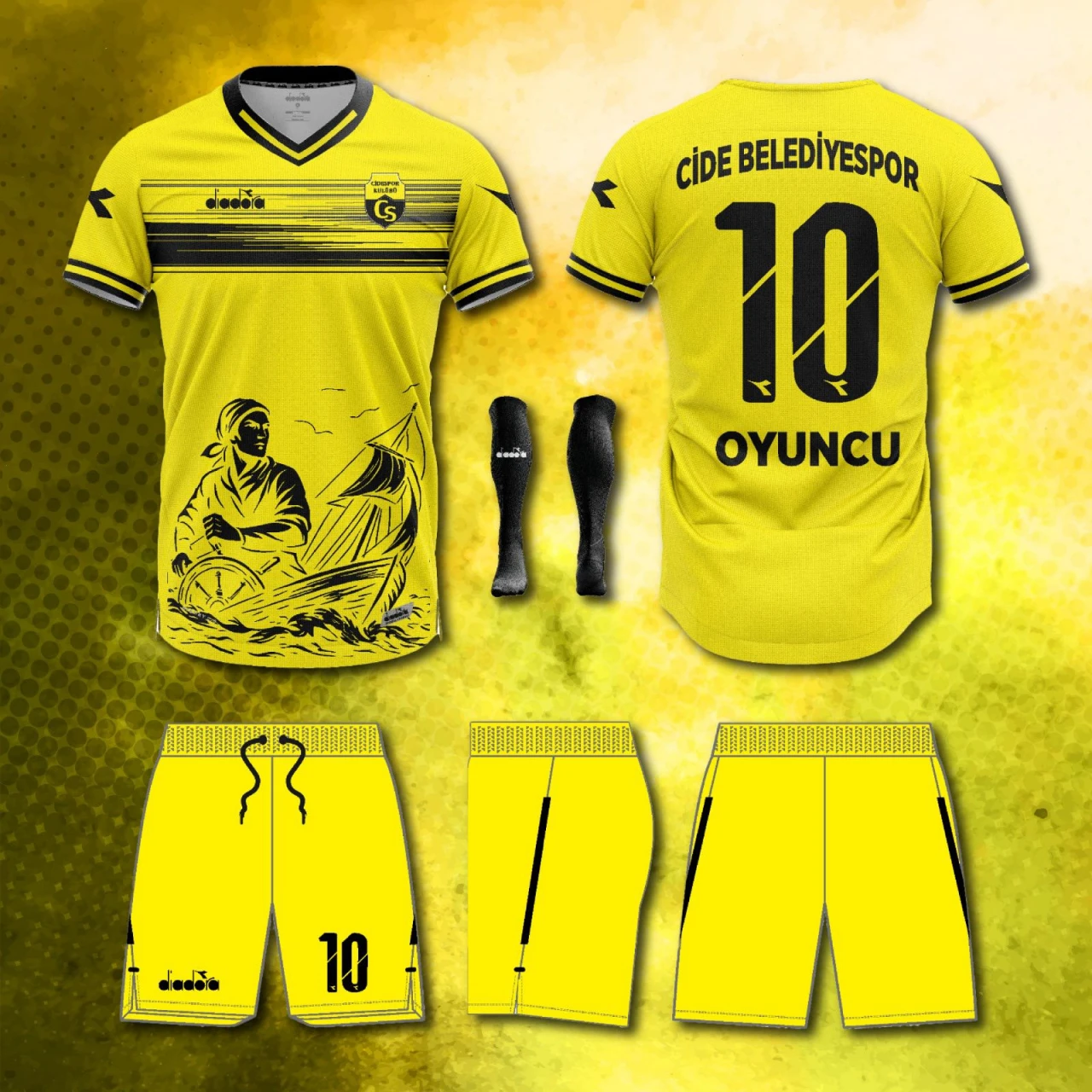 Cide Belediyespor yönetiminden yapılan açıklamada; “Bu sezon sahaya sadece mücadele ruhumuzla değil, tarihimizle de çıkıyoruz. Yeni sezon formamızda milli mücadele kahramanı, ilçemizin gururu, Karadeniz’in cesur kadın kaptanı Rahime Kaptan’ın siluetini taşıyoruz. Bu özel detay, Cide’nin denizle olan bağını, cesaretini, savaşçı ruhunu ve özgürlüğünü sahalara yansıtıyor. Siyah ve sarının güçlü duruşu ile birleşen Rahime Kaptan silueti, formamıza hem tarihî hem de manevi bir anlam katıyor. Yeni sezonda bu forma, hem sahada hem tribünde bir onur nişanı olacak! Geçmişten ilham al, geleceğe cesur adım at” ifadelerine yer verildi.