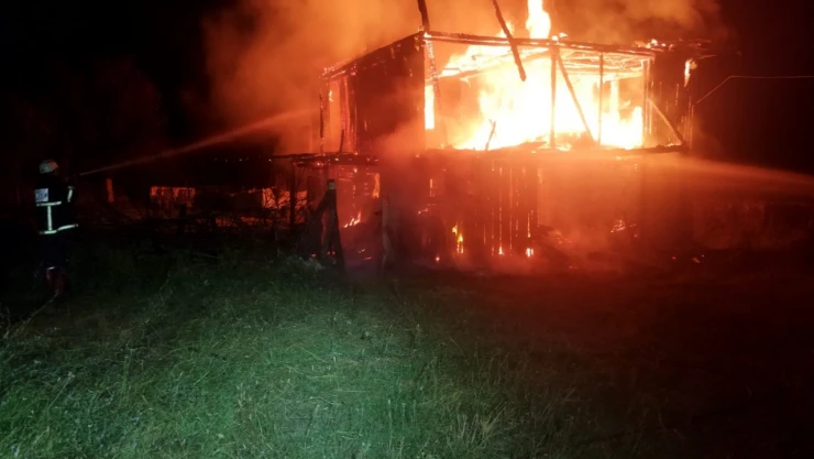 Bolu'nun Gerede ilçesinde çıkan yangında 2 katlı ahşap ev küle döndü.