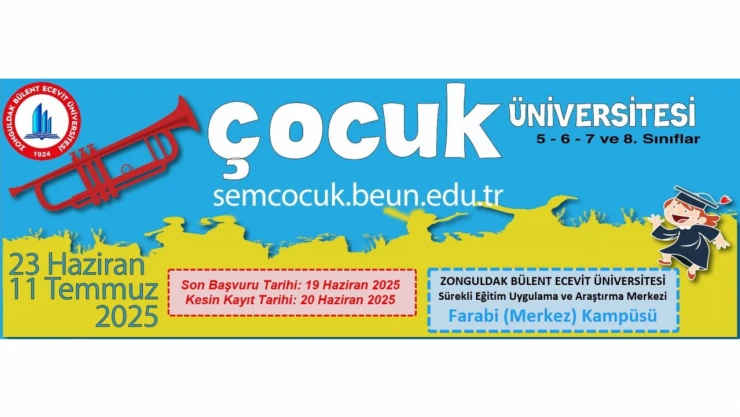 Zonguldak Bülent Ecevit Üniversitesi (BEUN), 5, 6, 7 ve 8. sınıf öğrencilerine yönelik olarak düzenlediği "Çocuk Üniversitesi" programıyla bu yaz da genç zihinlere kapılarını açıyor. 23 Haziran-11 Temmuz 2025 tarihleri arasında Farabi (Merkez) Kampüsü’nde gerçekleştirilecek program için son başvuru tarihi 19 Haziran olarak duyuruldu.