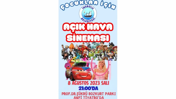 İnebolu Belediye Başkanlığı’nca düzenlenen eğlence etkinlikleri kapsamında, yarın saat 21.00’da Prof. Dr. Şükrü Bozkurt Parkı Anfi Tiyatro’da çocukları için açık hava sineması animasyon çizgi film gösterimi gerçekleştirilecek.