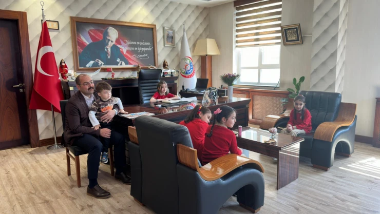 Tosya Belediye Başkanı Volkan Kavaklıgil, makamında çocukları ağırladı.
